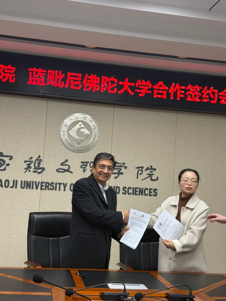 17 November 2025Lumbini Buddhist University (LBU) has entered into a significant international collaboration through the signing of a Memorandum of Understanding (MoU) with Baoji University of Arts and Sciences, a leading institution in Shanxi Province, China. The MoU aims to strengthen academic relations and broaden global engagement between the two universities. Under this agreement, both...Read More